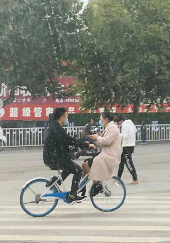 共享单车上演“杂技”