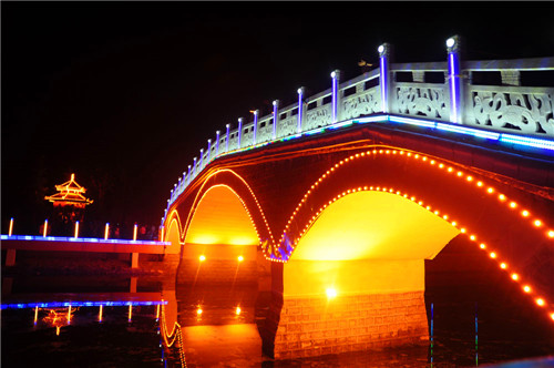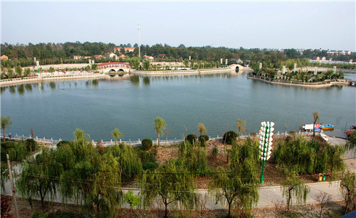 统计数据显示,贯穿城区“五河”的滨水景观廊道目前已达45公里,环绕互通的水系雨污分流,清波荡漾,千年古城活力再现;沿岸广场、游园、玉栏、花木、亭、廊、亲水平台,玲珑别致,相映成趣,形成了无数个多元空间,为市民提供了休闲健身空间和漫步快跑的理想场所;城区的50多座街心主题文化园,依势而修,与沿河的美化、绿化、亮化融为一体,每天傍晚,清波荡漾,虹桥飞架,卧波喷泉伴随着悠扬的音乐翩翩欢舞,“五河”上下,灯火璀璨,绚丽多彩,如梦如幻。“九河绕真源,五湖润鹿邑”的生态水系景观让行走其间的人恍若走进江南水乡,人在水上,水在画中的美妙意境让行走其间的人身心放松、回归自然。