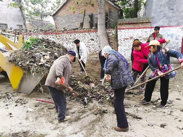 日前,大许寨乡各行政村成立人居环境综合整治指挥部,通过悬挂宣传横幅、出动流动宣传车等,营造人居环境综合整治浓厚氛围。图为热火朝天的劳动场景。 记者 马治卫 通讯员 王通 摄