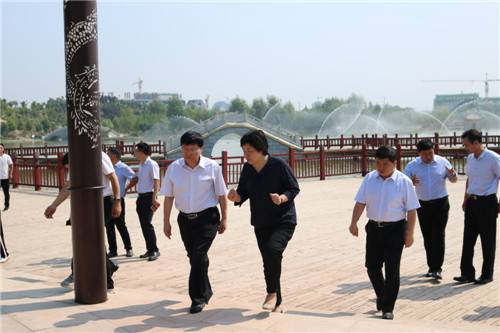 路云一行先后来到上清湖公园、闫沟河公园、陈抟公园提升暨古城墙恢复项目现场以及老子学院、涡河湿地公园等地进行实地察看,对鹿邑县的国土绿化、“百城提质建设工程”、城市规划建设及精细化管理等相关工作给予充分肯定。