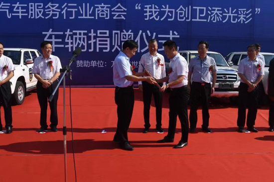 7月29日,市汽车服务行业商会“我为创卫添光彩”车辆捐赠仪式在开发区人民广场举行。周口市汽车服务商会携手万国车世界将价值100多万元的10辆皮卡车无偿赠送给开发区。