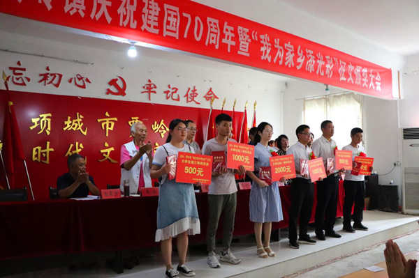 8月2日上午,项城市贾岭镇举办庆祝新中国成立70周年暨“我为家乡添光彩”主题征文颁奖活动。项城市委常委、统战部长段晓及项城市文化广电和旅游局、贾岭镇主要负责人出席活动。