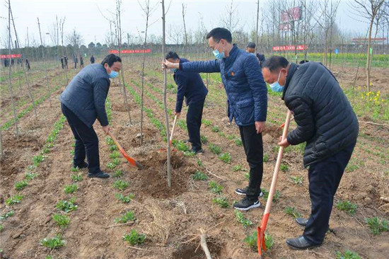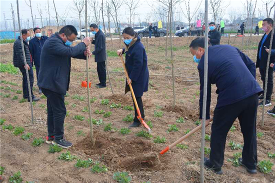 3月12日,开发区党委书记王文峰、管委会主任刘涛带领开发区领导班子、开发区中层干部和有关单位职工,在创业路南段宁洛高速北侧举行义务植树活动。