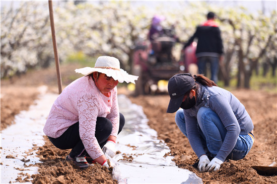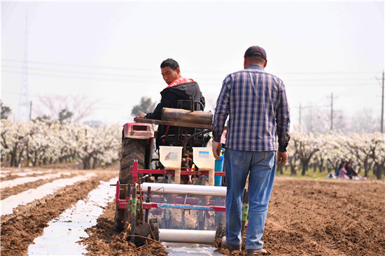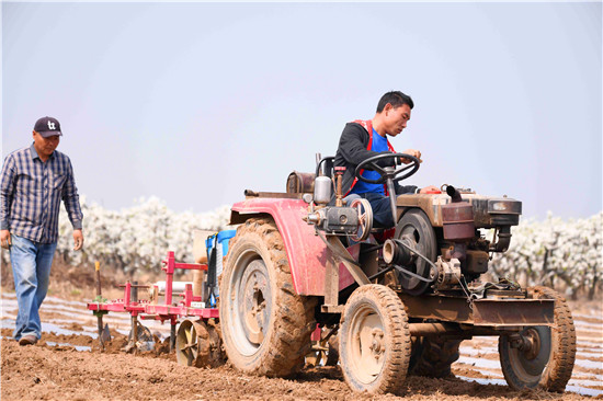 春光明媚,土壤湿润,正是春耕春播的好时机,农民们给玉米、冬小麦、棉花等农作物开播、浇水、施肥,为秋季丰收做好布局。近日,记者在黄泛区看到,农民们种植玉米已经实行机械化,下种、施肥、打药、压上薄膜,一次成型,减轻了劳作的压力。