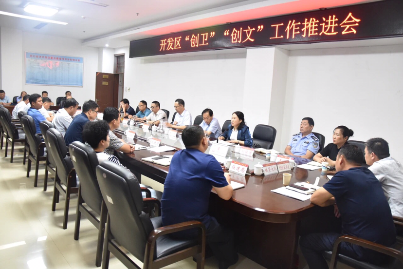 7月17日,开发区召开“创卫”“创文”工作推进会。开发区领导王文峰、李鹏、杨国建、谷静、于杰、赵愚、王静及市公安局太昊路分局政委刘振国参加会议。