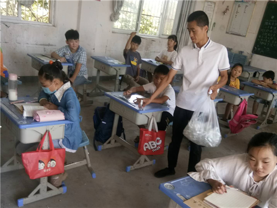 现场活动中,两位老师拿出自己的支教补贴购买了150个喷壶和酒精,逐一发放到各个班级,并进行了疫情防控常识及其每天酒精消毒方法讲解,同时和学校老师一道对校园和教室进行了消毒等疫情防控工作,积极做好了开学前的各项准备。