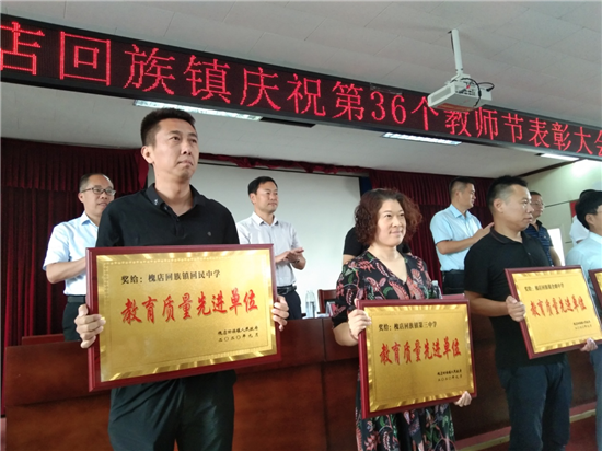 9月9日,沈丘县槐店回族镇在镇政府会议室召开庆祝第36个教师节大会,大会上总结成绩,部署工作,表扬先进,大力弘扬尊师重教传统,激励广大教职工不忘初心、牢记使命,同心协力推动全市教育事业健康快速发展。