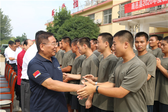 9月9日上午,在鹿邑县预定新兵役前训练集结之际,资深媒体人、北京周口企业商会秘书长、鹿邑县双拥爱心协会发起人张杰特别邀请享受正军级职资待遇、终身享受国务院政府特殊津贴的鹿邑籍将军毕启亮,为鹿邑县343名体检、政考双合格的“准新兵”上了一堂精彩的国防教育课,同时还向“准新兵”每人捐赠一套由周口商水籍原总政治部秘书长、军事科学院副政治委员,第二炮兵副政治委员程宝山中将亲手题写“昨日是乡亲,今天成战友——从军报国志高远,不忘家乡故土情”的笔记本和钢笔一支。鹿邑县人武部部长范亚光,县退役军人事务管理局负责同志以及鹿邑县双拥爱心协会团体在现场聆听国防教育课并参加捐赠活动。