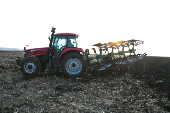 10月20日,周口市天华合作社农机手在商水县高标准农田内进行土地深耕。