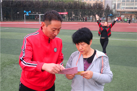 活动中,志愿者们向晨练的群众发放健康运动提示卡、防范电信诈骗、扫黑除恶、不动产登记等方面的宣传材料,免费派发“爱心粥券”;细心讲解老年人常见的十大心理、常见病的预防等强身健体保健常识,引导群众合法应对“保健品大促销”、“集资诈骗”等典型诈骗行为;倡导老年人多了解法律知识,以提高识别诈骗、自我维权的能力。同时,志愿者们主动拾捡体育场内的树叶、杂物等,为晨练群众创造干净卫生的健身环境,深受群众喜爱和称赞。