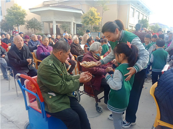 来到周口市老年护理院之后,学生们在老师的有序组织和家长们大手牵小手的帮助下,给那里的爷爷奶奶们送去了节日的祝福。祝愿爷爷奶奶身体健康,生活快乐!同时为爷爷奶奶表演了自编自导的节目。孩子们的有趣表演博得老人们开心开怀,并给以阵阵掌声。