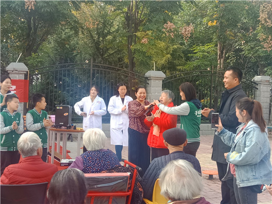 最后,整个活动在老人和学生合唱《没有共产党就没有新中国》的旋律中结束。