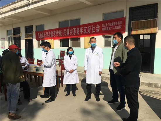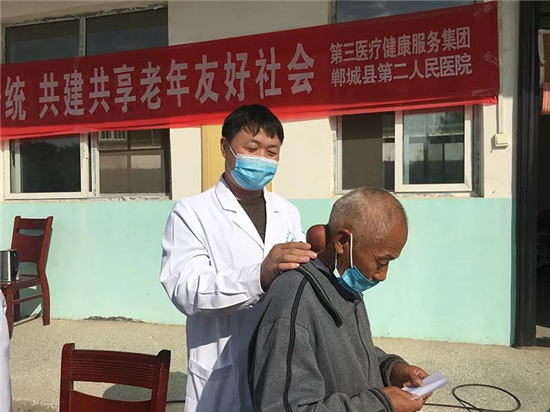10月25日,郸城县第三医健服务集团郸城县第二人民医院副院长李俊领根据总医院院长刘辉安排,率领由内科、外科、骨科、疼痛科、康复科、眼科、心电图科、彩超科、检验科等科室专家组成的爱心医疗队,携带医疗器械、药品来到宜路镇敬老院,会同宜路镇卫生院副院长王文君带领的医护骨干,为全院老人免费体检。