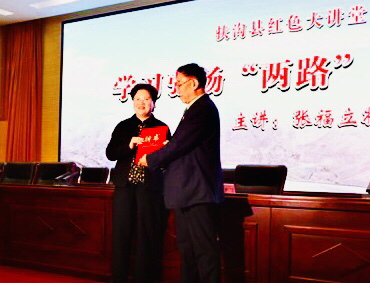 为了更好地学习张福林烈士事迹,弘扬“两路”精神,激发全县干部群众的干事创业斗志,此次讲座请回了张福林烈士的弟弟——张福立将军,为大家讲述了“两路”精神。