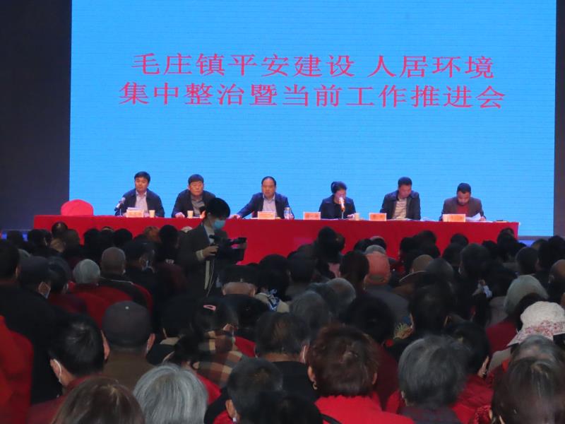 广泛宣传,获取群众支持。毛庄镇多次组织召开由全体干部职工、驻村第一书记、支部书记和群众代表参加的平安建设工作推进会,通过悬挂条幅、发送微信、出动宣传车等形式进行宣传。各村也相继召开了村民大会,村内平安大喇叭不间断播放平安建设工作录音,并给群众讲解接听12340公众安全感和执法满意度调查电话的注意事项,让广大群众知晓、配合、支持工作。