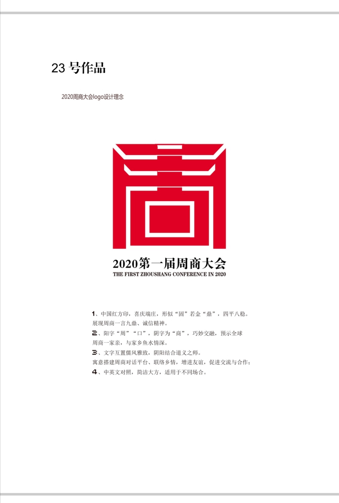 自11月12日起面向社会公开征集第一届周商大会主题会标,截至11月19日24:00时,大会工作组共征集到来自10个省辖市的作品67件。11月20日上午10:00时,对作品进行统一编号后,经专家评审团评审出55幅进入评选,经逐项打分初评出6件作品,最后按综合得分前三名作品入围。