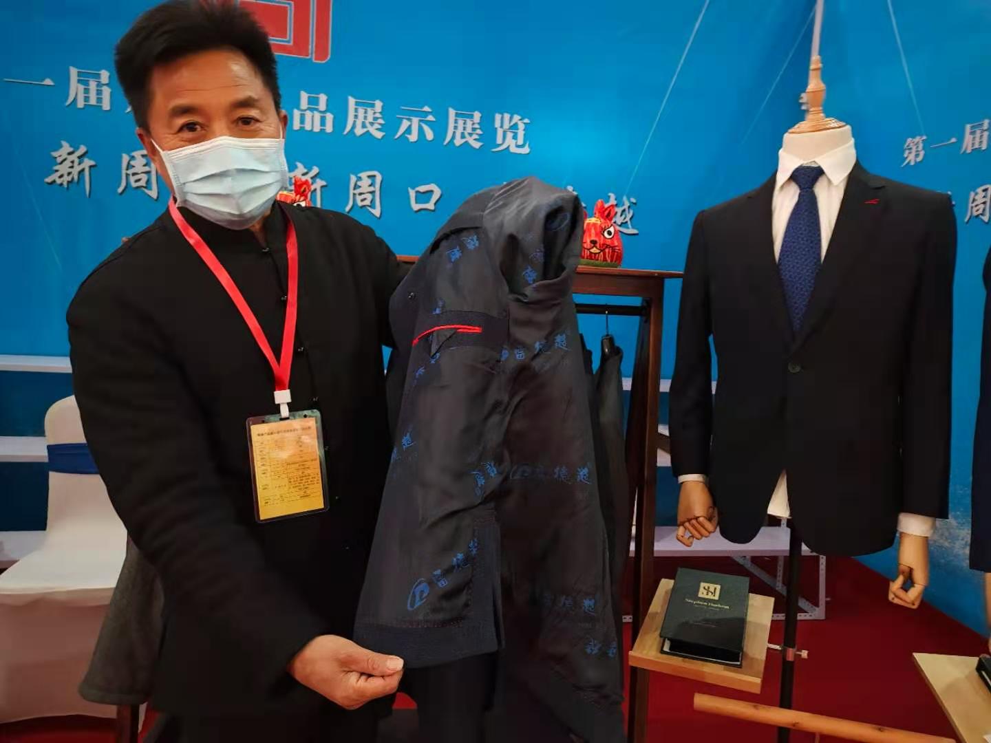 量身定制,做工考究,一件件手工制作的西服让不少人重新认识服装的制作过程。在周商大会开幕当天,记者见到了淮阳县第十三届政协常委、非物质文化遗产淮阳布老虎传承人、淮阳县工艺美术协会副主席雷智超。本次大会,他不仅带来了呆萌的布老虎,还带来了以自己名字命名的手工西服。制作精良的手工西服像极了一件件艺术品,吸引了不少人咨询。
