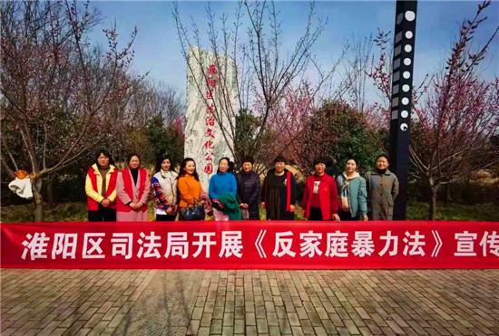 座谈会结束之后,大家化身普法志愿者,前往淮阳主题森林公园·梅园,给前来赏花游玩的群众普及法律知识,针对女性同胞讲解妇女儿童保护、化妆品安全、财产权益、婚姻家庭权益、家庭暴力等方面的知识,进一步加强妇女们的法律意识。