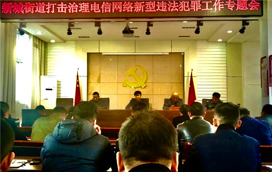 4月2日,新城派出所召开打击治理电信网络新型犯罪工作专题会,对办事处各行政村、自然村干部进行反诈知识培训,积极发动村干部走访、宣传“金钟罩”。