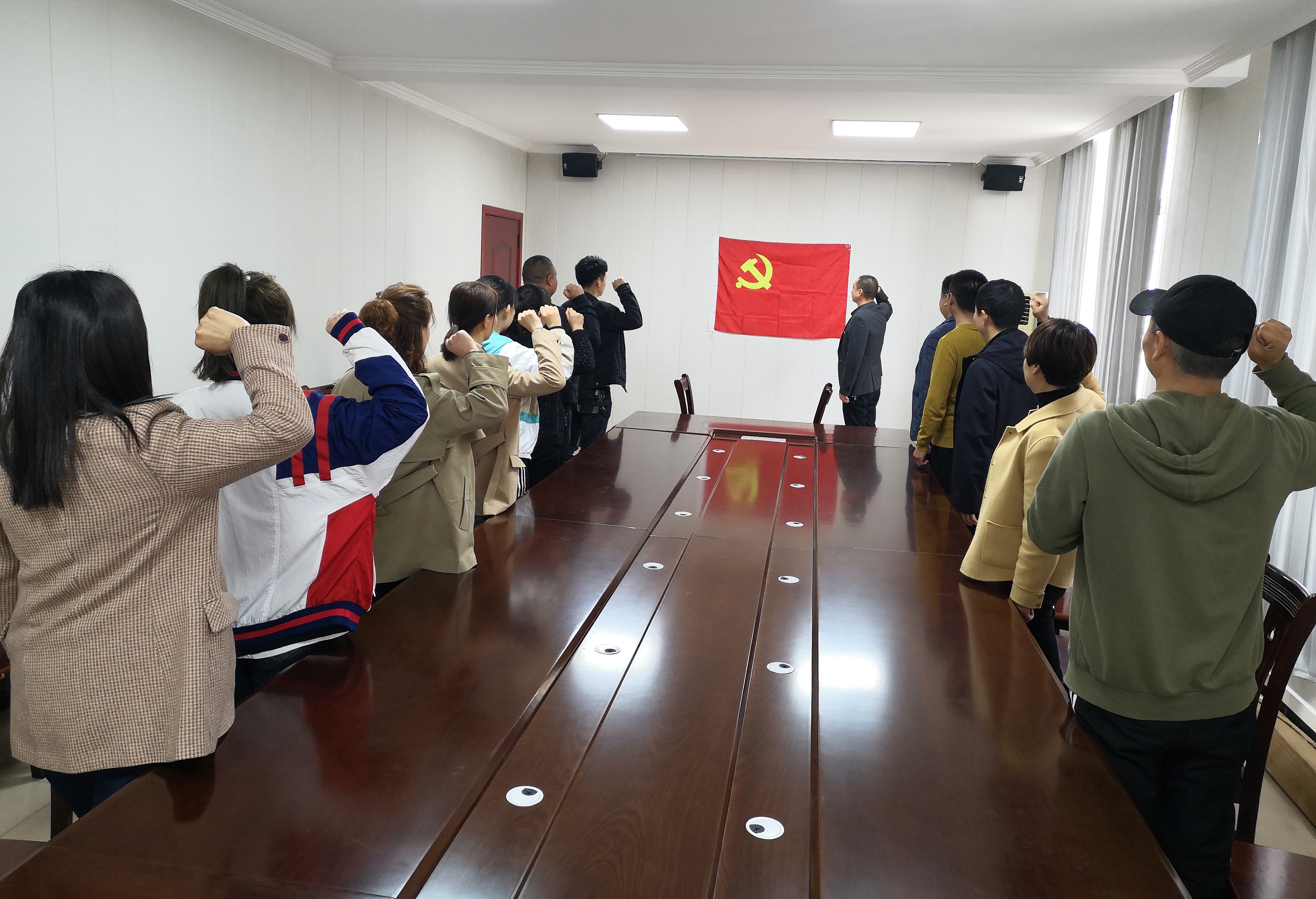 活动中,党员干部佩戴党徽在鲜红的党旗下,举起右手,庄严宣誓,重温入党誓词,在党旗下接受心灵的净化和洗礼,牢记共产党员的政治责任和历史使命,不断保持共产党员的先进性,以更加饱满的热情投身各自工作,切实发挥共产党员的先锋模范作用,永葆共产党员的政治本色。