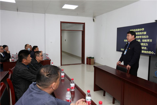开考后,家长们在学校党总支书记、校长高光乾的陪同下先后来到学校超市、北清部、学校广播电视台、青少年健康辅导中心、档案室、爱国主义教育基地和职工书屋参观。在教研中心会议室,大家共同观看了学校活动及三大步励志教育视频。高光乾在与家长交流时,向关心支持学校工作的各位家长和社会各界表示衷心的感谢,希望家长在最后1个月的备考时间里与学校一起做到“节奏不变、任务不减、呵护陪伴”,共同助推复习备考工作,让同学们在高考中取得优异的成绩。②5