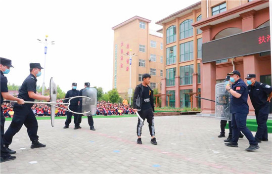 为进一步增强校园师生反恐防恐安全意识,切实提高校园恐怖事件应急处突能力,5月19日上午,扶沟县公安局反恐大队联合特巡警大队、城郊派出所到县实验小学金海路校区开展反恐宣传进校园活动。