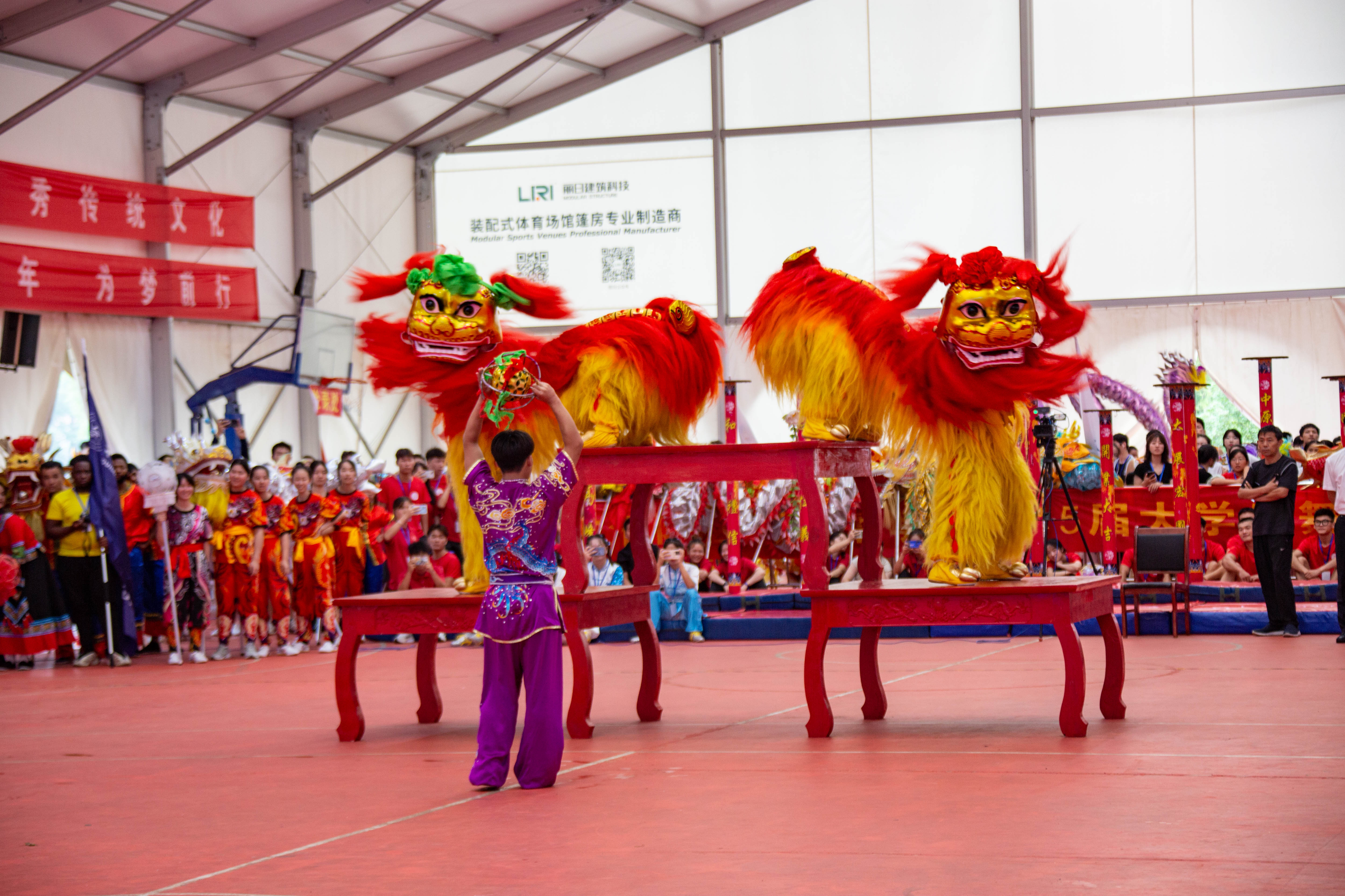 开幕式现场,华侨大学、广西师范大学、西安交通大学、桂林电子科技大学、中南大学等代表队分别表演了舞龙舞狮节目,龙腾狮跃,气吞山河,威风凛凛,展现出新时代大学生勇于拼搏、敢打敢胜的精神风貌。