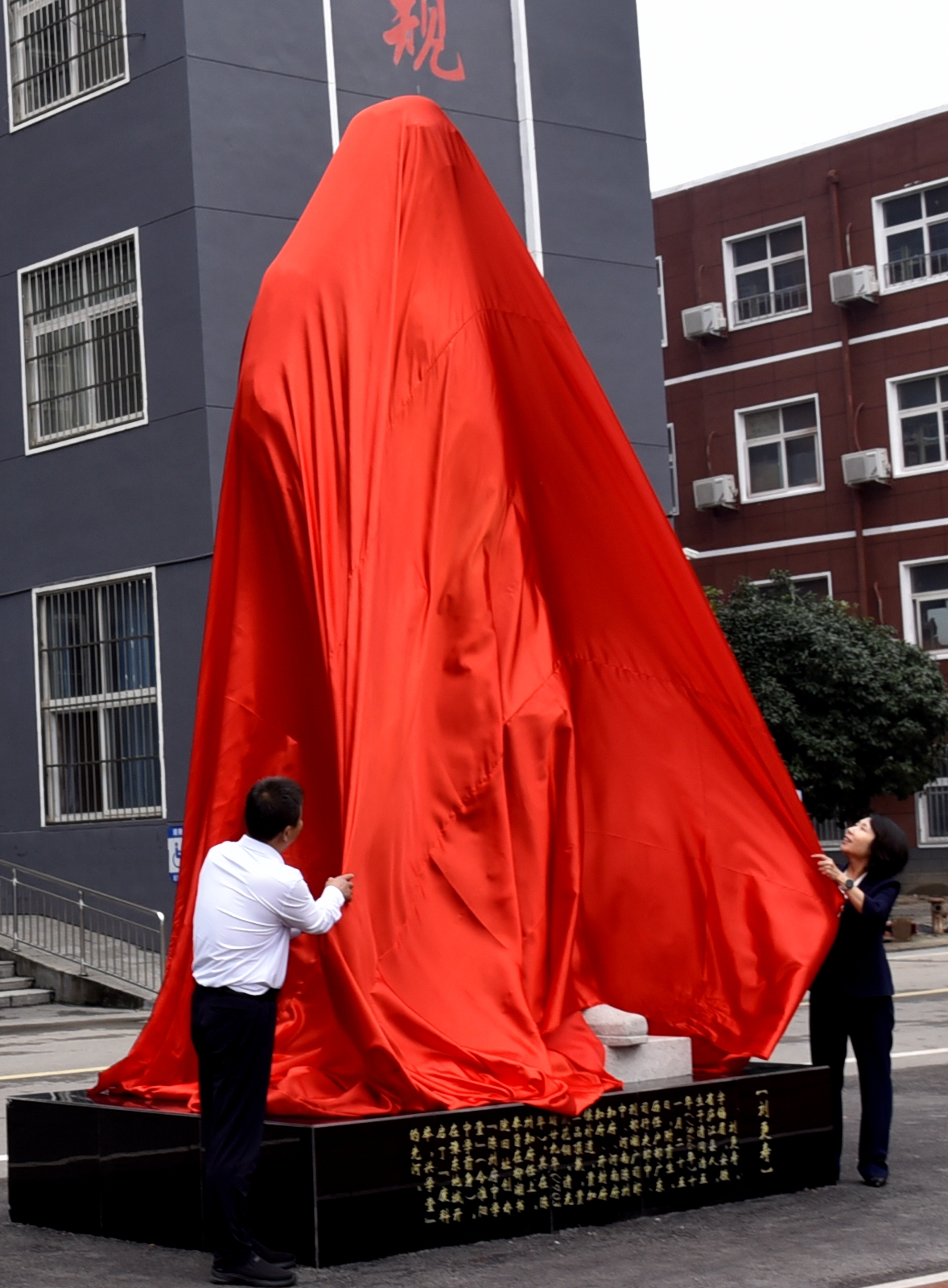 最后,王春华和李启明在欢庆氛围中为雕像揭幕。