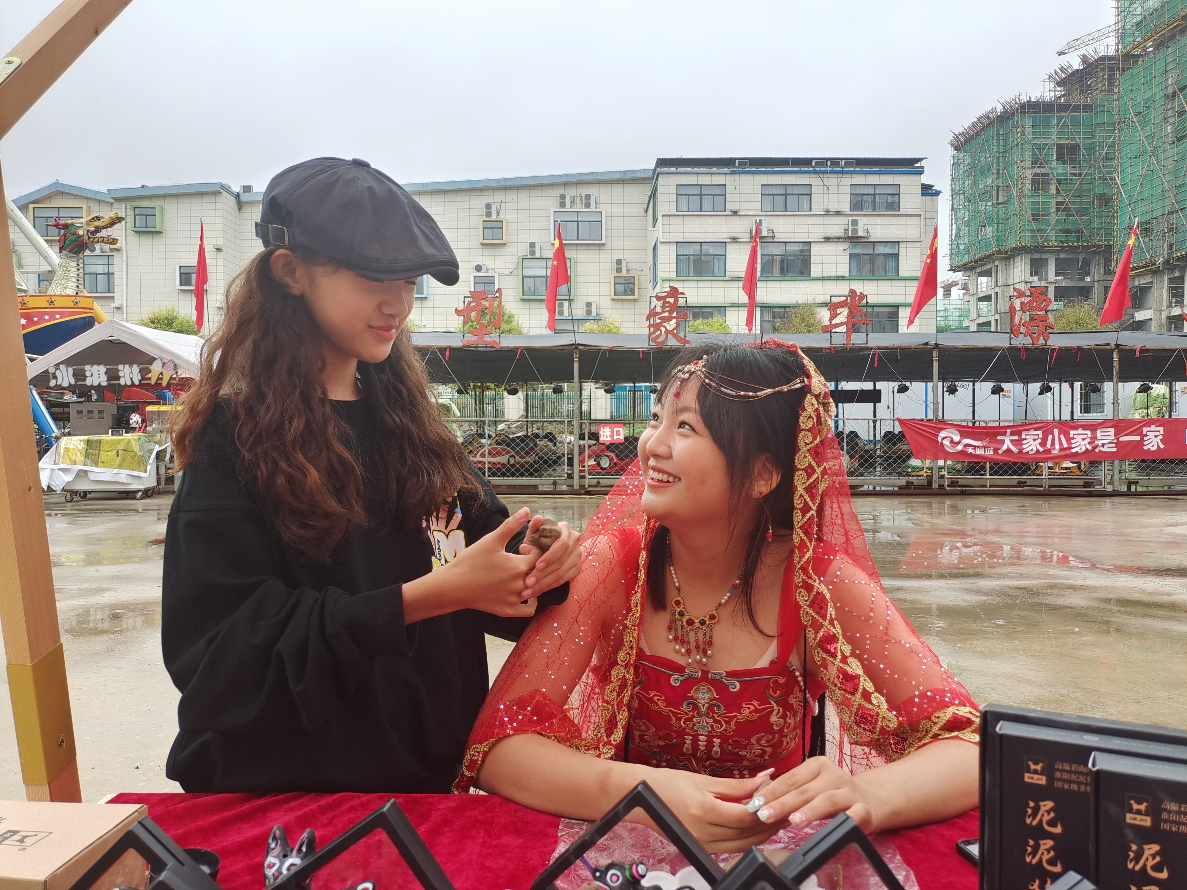 伴随着开场舞《盛世欢歌》,“潮流双节·中秋游园会暨国庆嘉年华”活动启动仪式正式拉开帷幕。泥泥狗、剪纸、书法、绘制团扇……现场工作人员有的身着少数民族服装,有的身着汉服,用亲手制作的方式展示着传统非物质文化遗产独有的韵味,吸引着来往的大人小孩驻足。有的甚至亲自参与制作,捏泥泥狗、写毛笔字、画传统团扇……现场欢笑不断,大家在亲自动手的过程中充分感受着中国传统节日的丰富文化内涵。