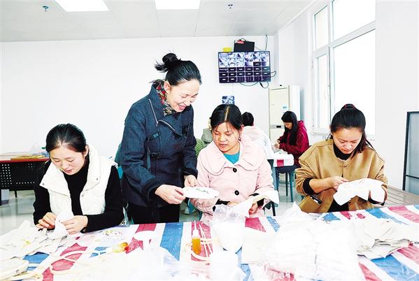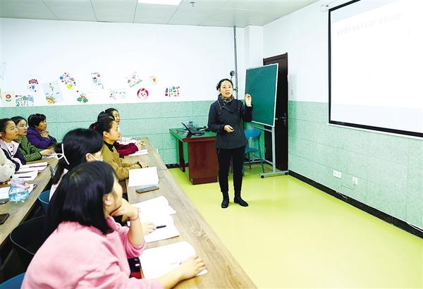 邵莉娜指导学生家长做手工,以便家长安心陪伴孩子上语训课。