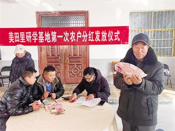 本报讯(记者 高洪驰) “没想到这废弃多年的砖窑厂又派上用场了,一下就分到3860元。”12月23日,沈丘县白集镇白庄行政村63岁的村民张秀兰提起该村“美田里”研学劳动教育实践基地(以下简称,“美田里”研学基地)为群众分红的事,还是满脸激动的神色。