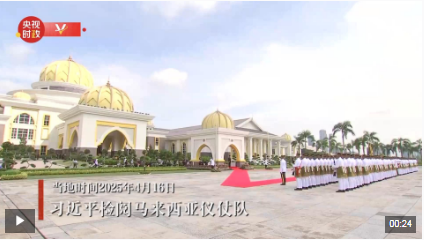 当地时间4月16日上午,国家主席习近平检阅马来西亚仪仗队。