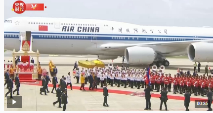 当地时间4月17日上午,国家主席习近平在柬埔寨国王西哈莫尼的陪同下检阅柬埔寨仪仗队。