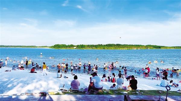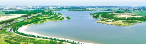 近日,天气晴好,引黄调蓄湖波光粼粼,倒映着蓝天白云,景致如诗如画。
