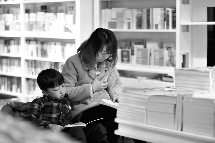 1月1日,在贵阳市云岩区乐转城市书房,家长陪伴小朋友阅读图书。