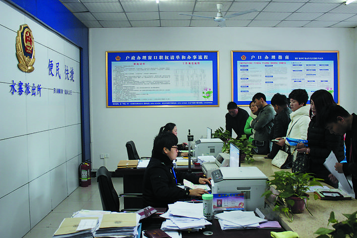 2017年12月13日8时,水寨办事处群众工作综合服务中心户籍窗口前围满了办事群众。