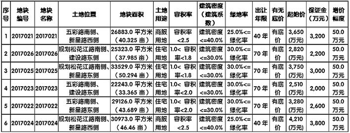 一、拍卖地块的基本情况和规划指标要求(详情见下表)