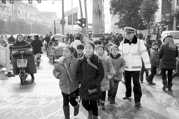 为切实加强小学生交通安全管理工作,近日,项城市公安局交警大队在各个小学门前、周边路口设立“护学岗”,执勤交警上下学高峰时段准时到“护学岗”执勤,强化路面管控,指挥疏导交通,呵护小学生安全有秩序地过马路,赢得学校领导和学生家长的好评。图为交警在青年路“护学岗”护送孩子们过马路。②7
