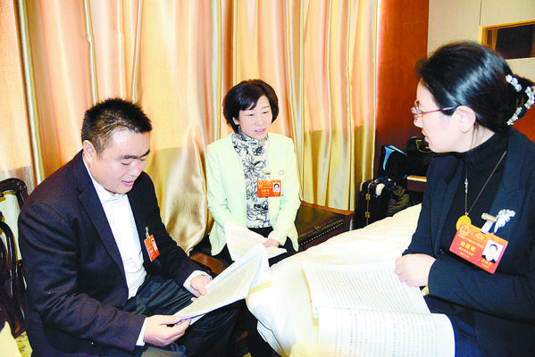 1月23日中午,即将出席省十三届人大一次会议的驻周省人大代表在驻地商议议案。②3 记者 王映 摄