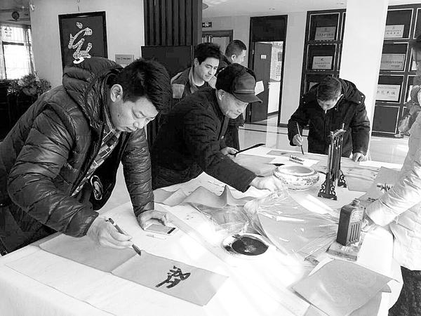 春节前夕,工行周口分行邀请我市部分书法家为客户写春联。韩冰 摄
