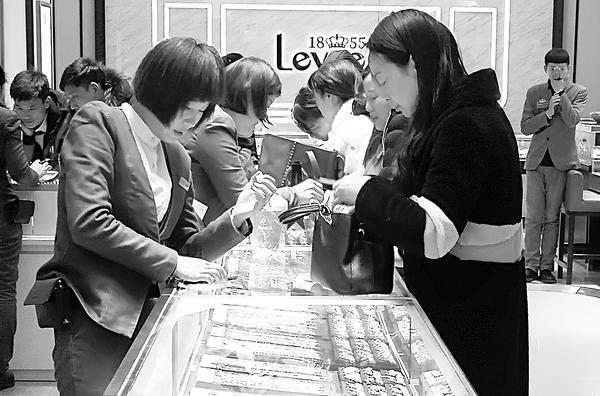 2月13日,消费者在选购饰品。临近春节,我市消费市场红火,节日气氛浓厚。记者 孙安平 摄