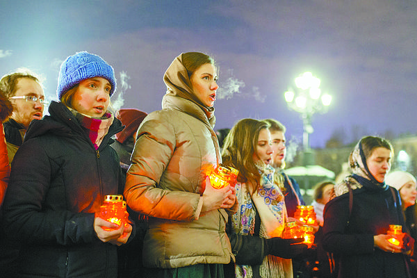 莫斯科民众悼念失事客机遇难者 2月12日,在俄罗斯首都莫斯科,人们参加为失事客机遇难者举行的悼念仪式。负责协助调查俄11日飞机失事原因的俄罗斯侦查委员会12日表示,初步调查显示,失事的安-148型客机在触地坠毁后爆炸起火,飞机残骸散落区面积约为30公顷(约合30万平方米)。新华社发
