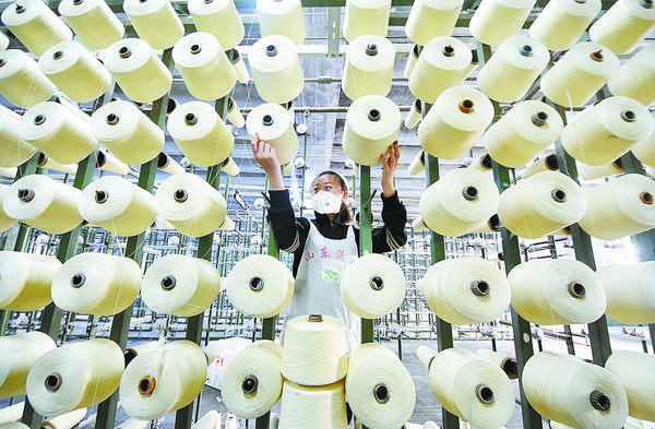 ① 2月22日,山东省沂源县一纺织企业的工人在岗位上忙碌。