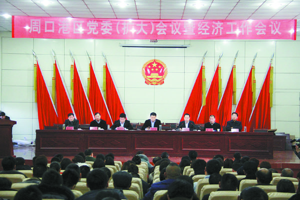 周口港区党委书记孙红伟在会上作党委工作报告,港区管委会主任程若光作经济工作报告,港区党委委员、纪检书记尚红伟主持会议。区领导满非、杜广贤、张东立、港区公安分局政委何学民出席会议。港区直属各单位、市直派驻机构全体人员、李埠口乡党委政府全体干部、港直机关负责人、各中小学校长、部分公安干警、城管队员及各行政村三委班子等参加会议。