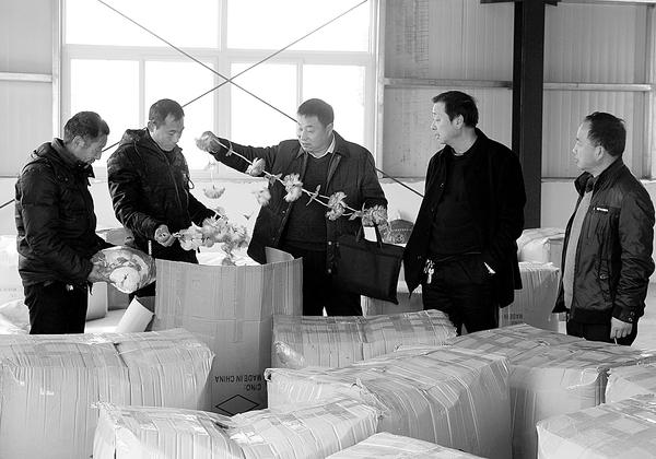 3月6日,扶沟县工商局有关负责人到帮扶贫困村大新镇许楼村察看贫困户陈奇峰加工的清明花工艺品。近年来,该局坚持“智、志”双扶,引导贫困户主动创业就业,脱贫增收。卢付昌 摄