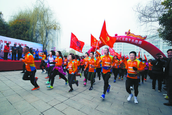 3月3日上午,2018年“中华保险杯”新年长跑赛在川汇区政府广场开跑,全区各单位运动爱好者、部分社会跑友团成员共约2000人参加比赛。图为起跑瞬间。理效明 摄