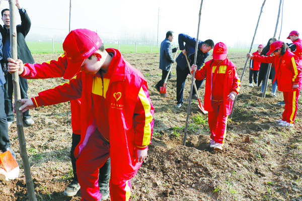 上图 3月12日,市科技局迅速响应市委、市政府号召,积极开展植树造林活动。记者 宋馨 摄