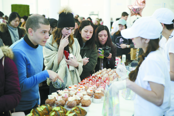 3月18日,在美国纽约,人们在甜品节上选购甜品。一年一度的纽约“甜品目标”甜品节于17日开幕,20多家甜品展商在现场展示造型精美、创意十足的美味甜品,吸引超过5000名甜品爱好者报名参加。新华社发