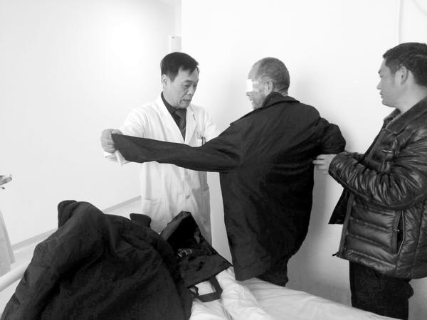考虑到患者的家庭经济状况,该院为宋大爷减免了大部分的检查费用和治疗费用,崔国义还为其购买了新棉衣(如图),医护人员则主动为其买饭送饭。宋大爷逢人就夸周口爱尔眼科医院医护人员技术好、服务好。