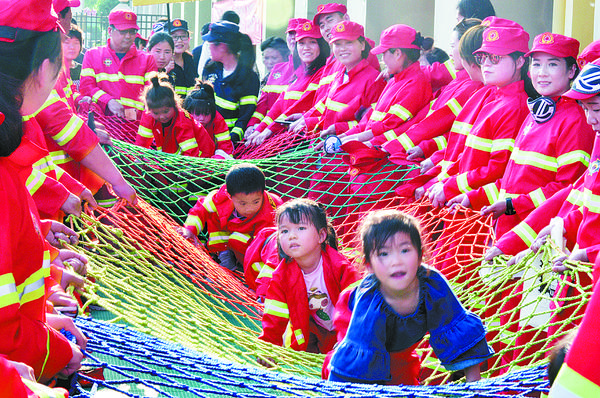 为了从小培养幼儿消防安全意识,4月28日下午,周口艾乐幼儿园组织200多名幼儿和家长举办了一场别开生面的消防安全演练。演练项目有逃生、救护、营救和灭火等。整个活动精彩有序,实用性强。 记者 沈湛 摄